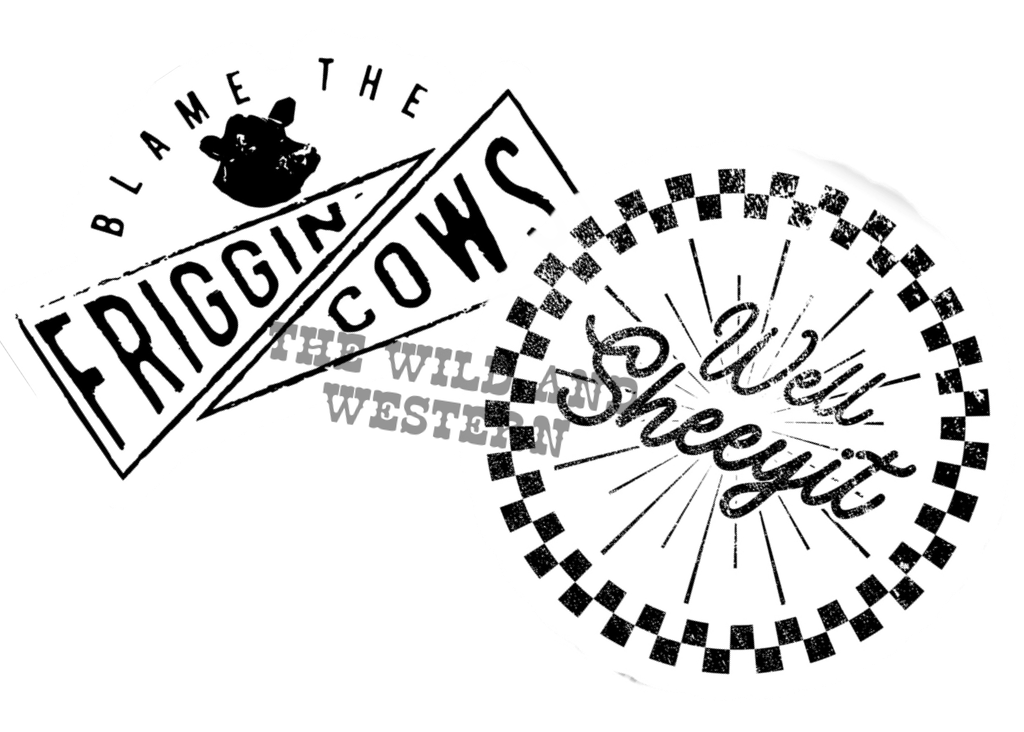 ✔ Vinyl Sticker – Choose Blame the Friggin’ Cows or Well Sheeyit Approx. 2"x3" & 3"x3"